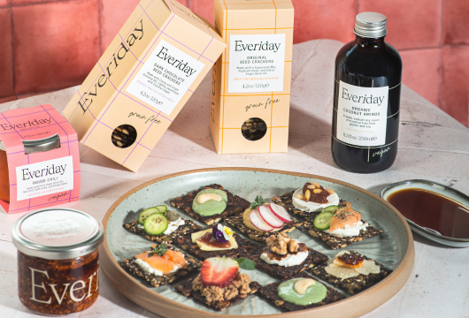 Ingredients: Almond flour, tapioca starch, water, olive oil, guar gum, tomato powder, pink salt, garlic powder, paprika, dried basil.