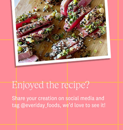 Serve the seared tuna sliced on a bed of greens with the sliced or cubed avocado and the remaining sauce drizzled over everything.