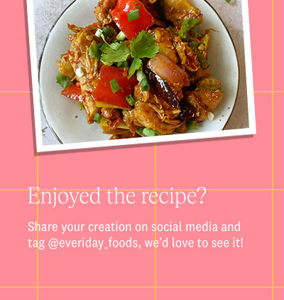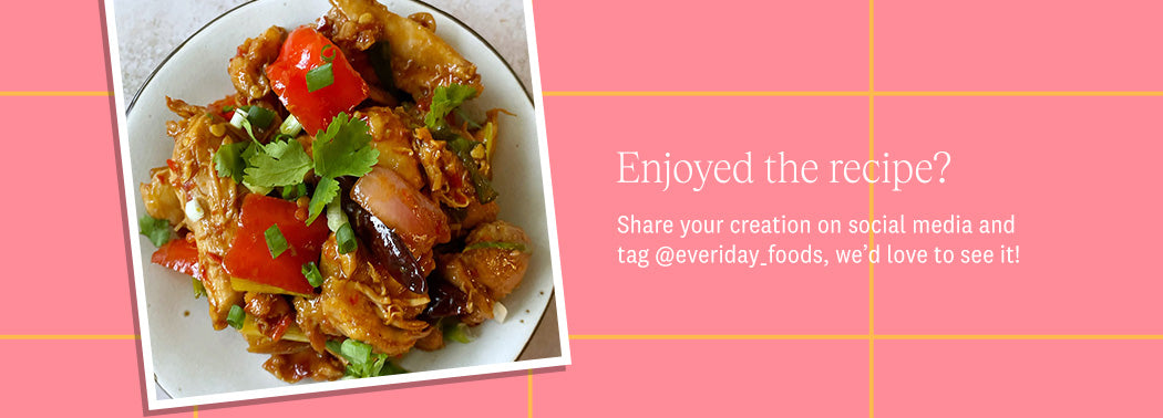 This recipe can be served as an appetizer or a main course and if you want to make it saucier, just double the Everiday coconut aminos, Everiday chili sauce, and vinegar, and add 1/2 a cup of water. If the sauce isn't thick enough, make a slurry with 1 tsp arrowroot or tapioca flour and mix with 2 tbsp cold water and add it to your dish.
