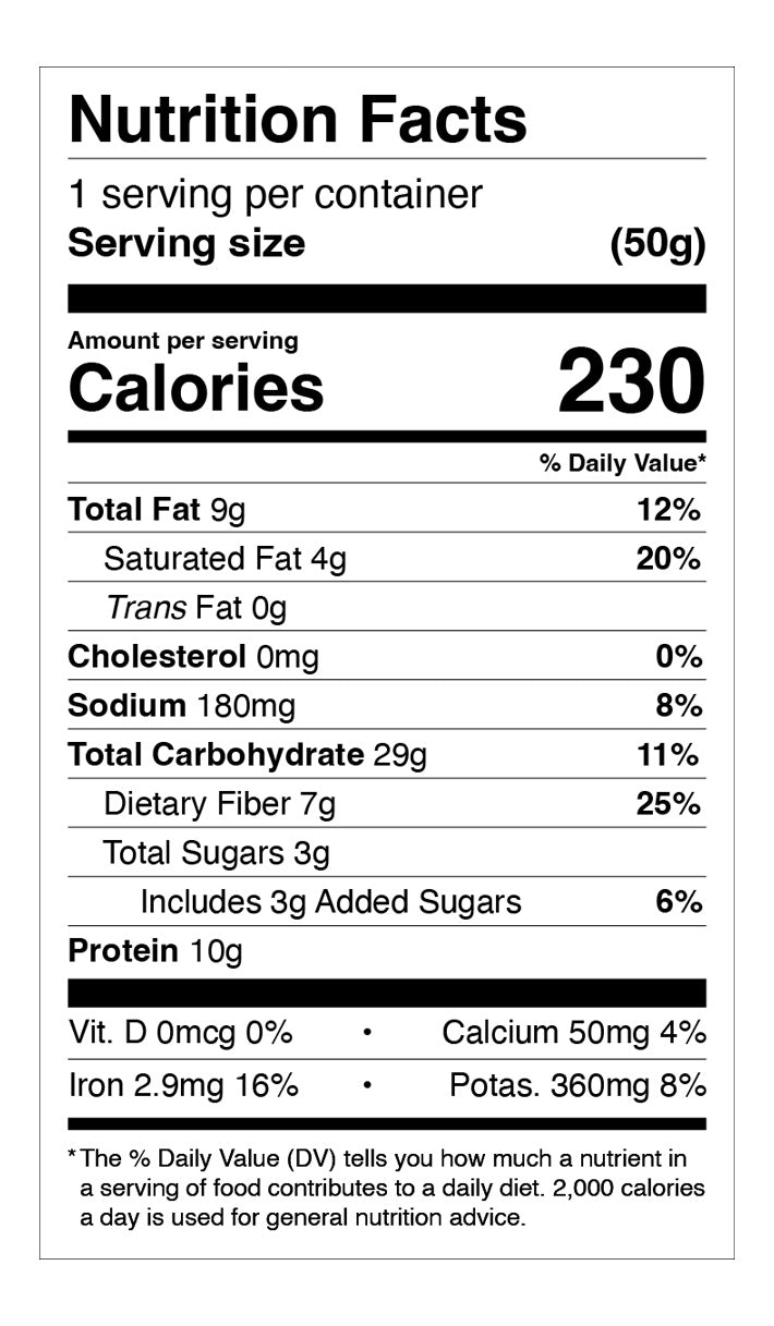 Made in a gluten-free facility that handles nuts, eggs, and sesame.