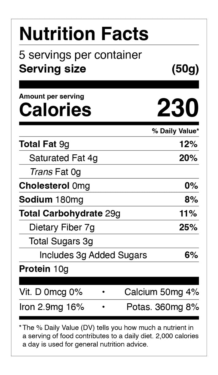 Made in a gluten-free facility that handles nuts, eggs, and sesame.