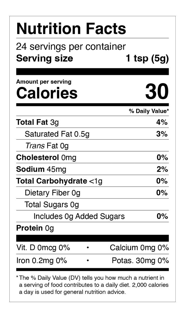 Ingredients: Extra virgin olive oil, garlic, dried chili, coconut aminos, chili padi, pink salt.