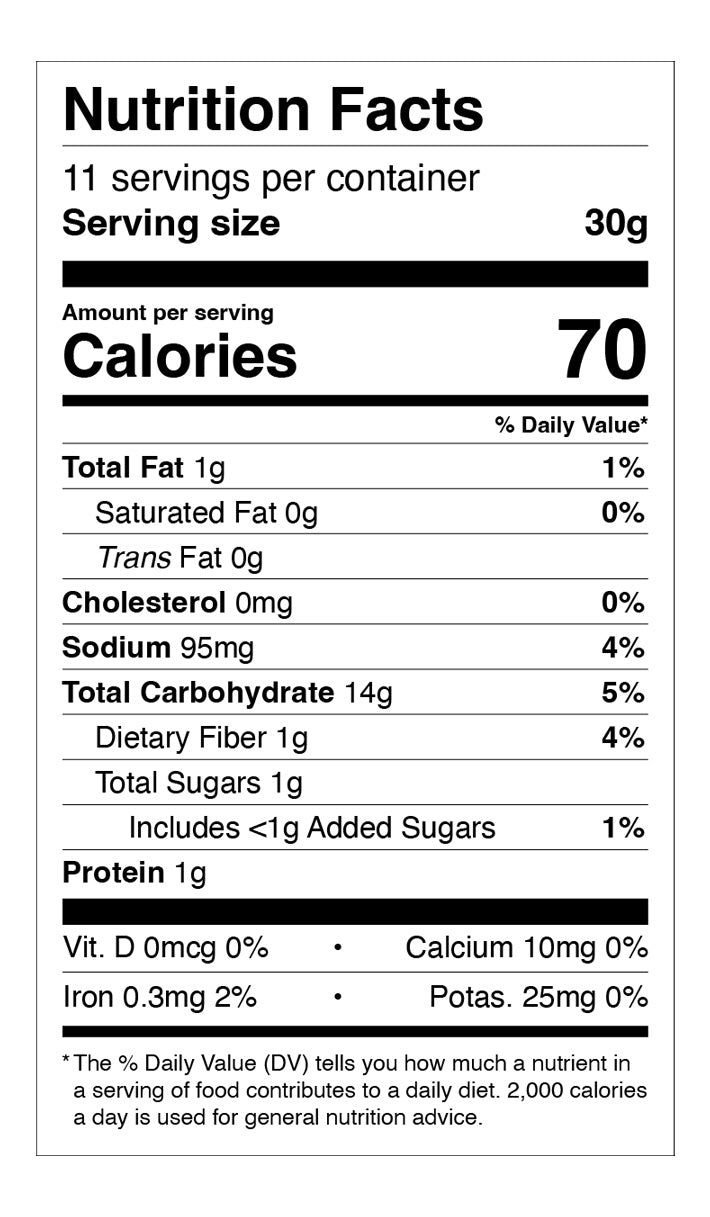 Made in a gluten-free facility that handles nuts, eggs, and sesame.