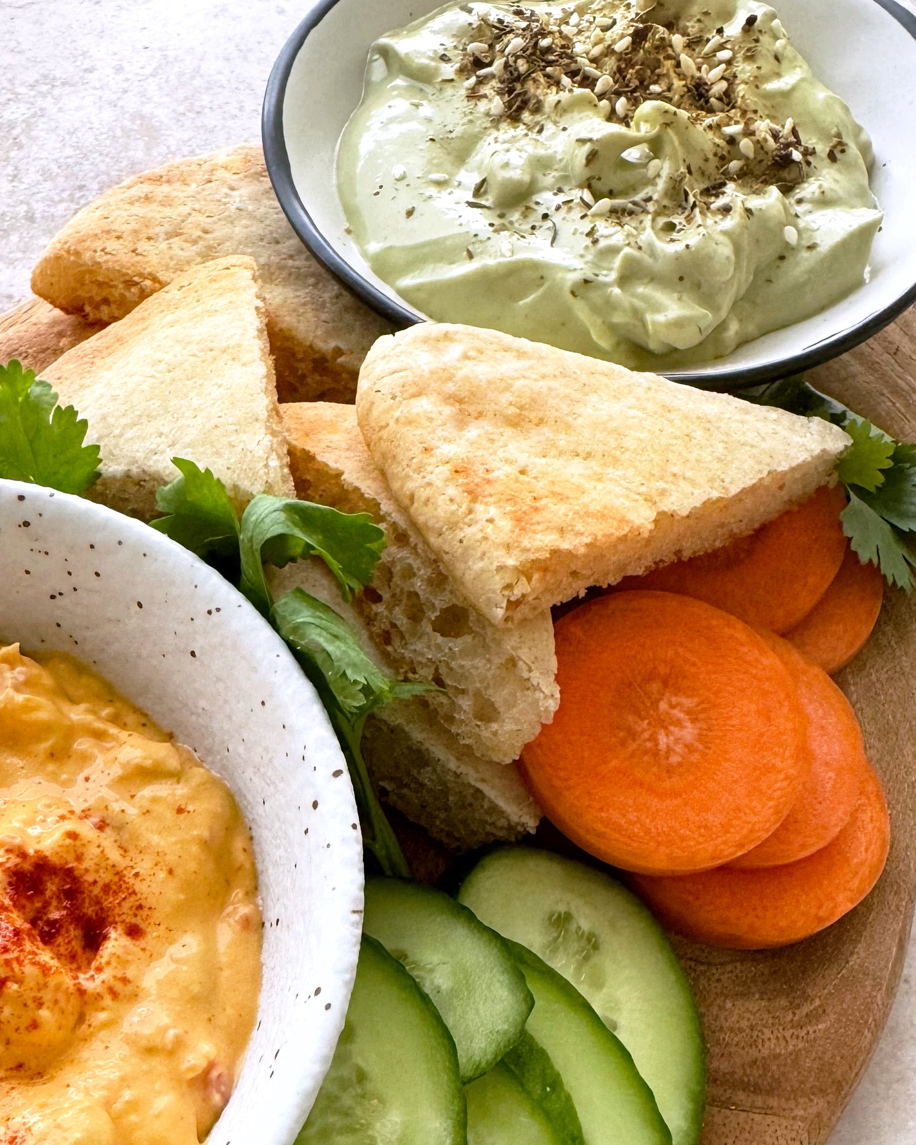 A pocketless pita that's soft, chewy and incredibly versatile. Use it for topping or dipping.