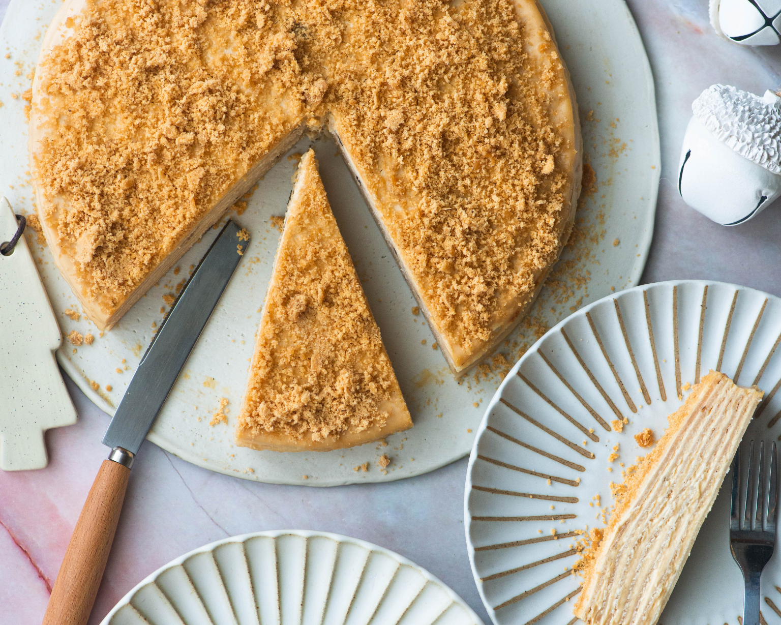 Assemble the cake. Take a tortilla and spoon over a generous amount of caramel cream. Stack another tortilla on top. Repeat with more cream followed with another tortilla. Proceed this way until you have used all the cream.