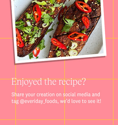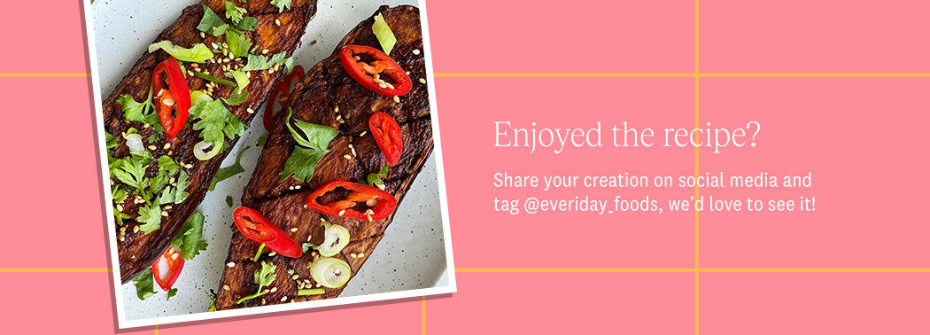 Place some baking paper on a baking tray, lay the marinated aubergines (facing up) and bake for around 30 to 40 minutes. or air fry for 15 to 20 minutes.