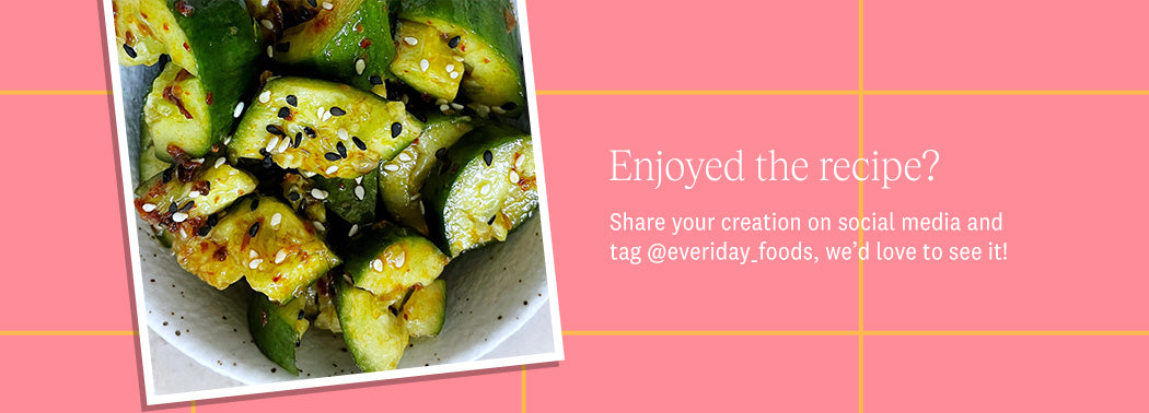 Just a few simple ingredients and you have a spicy, tangy, fresh cucumber salad perfect to pair with a meal or to have as a snack.