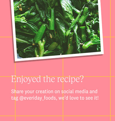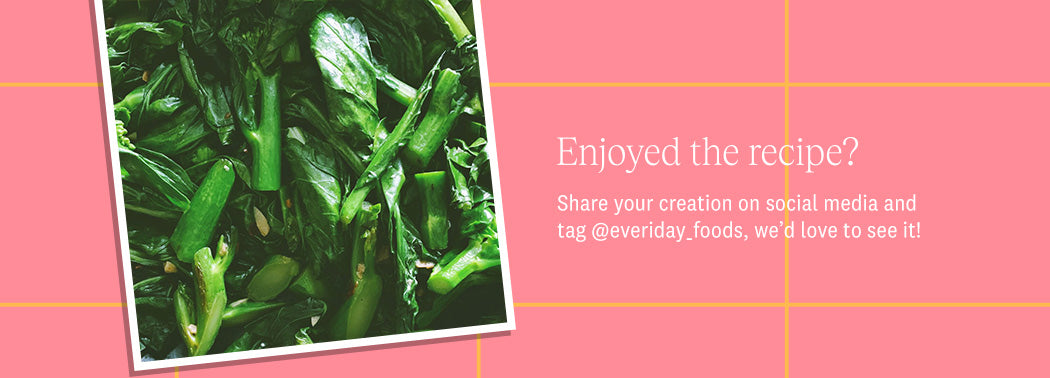 Turn off the stove, drizzle in some sesame oil, along with the Everiday garlic chili oil or Everiday chili crispy and give everything a nice mix. Taste and adjust salt and spice as needed.