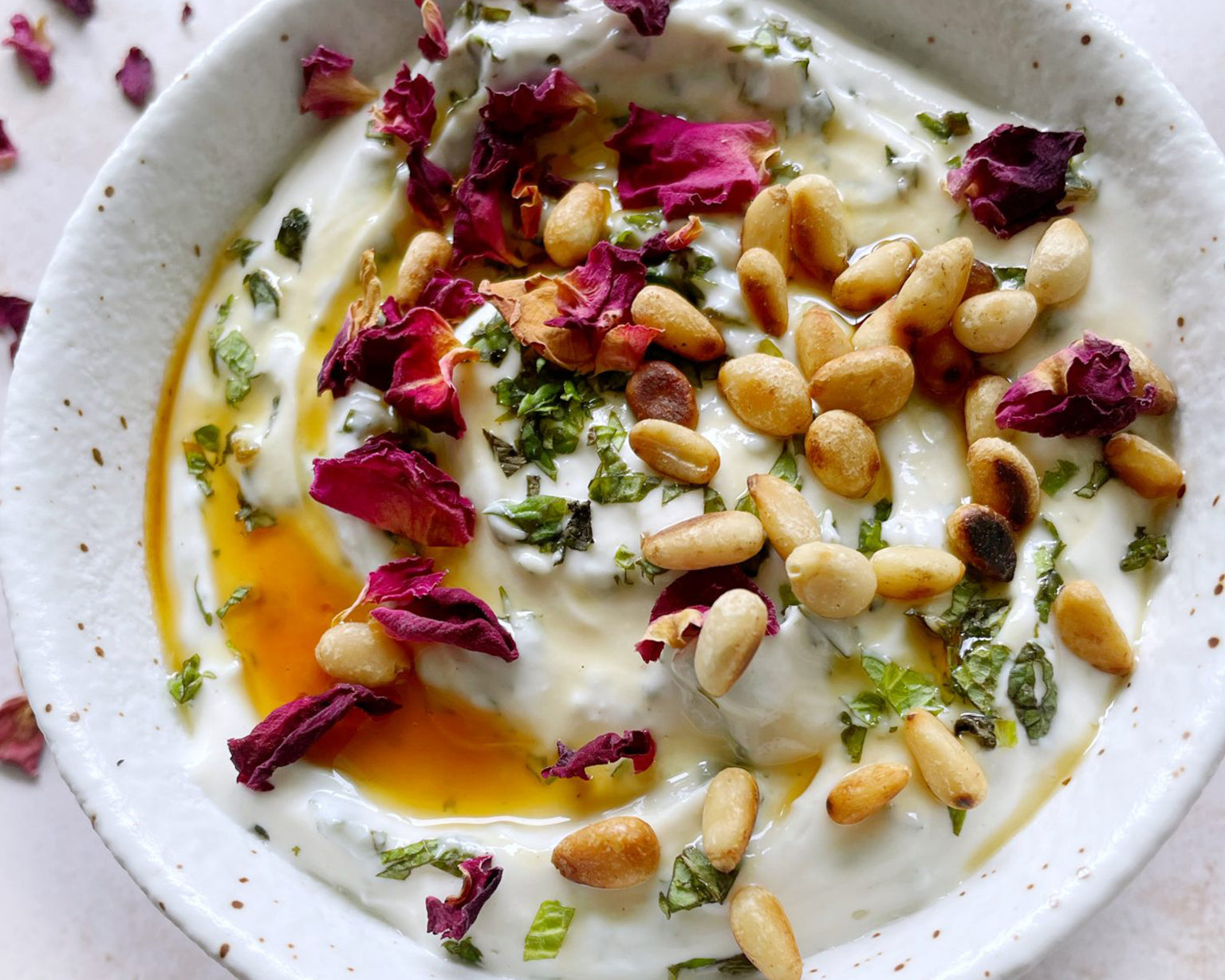 The flavors of creamy yogurt, rich tahini, and sweet honey aren't your typical combination but they work so beautifully together. Rounding out the flavors is fresh mint and lemon juice to really balance the richness of this dip.